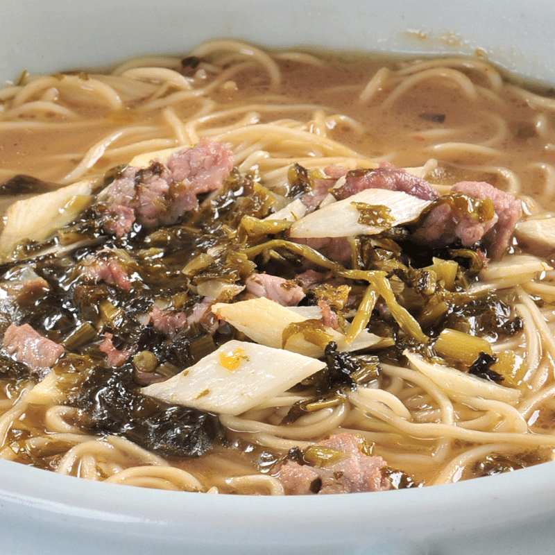 从坛中取出,挑选后真空包装、杀菌,最大程度保留了倒笃菜的原滋原味。