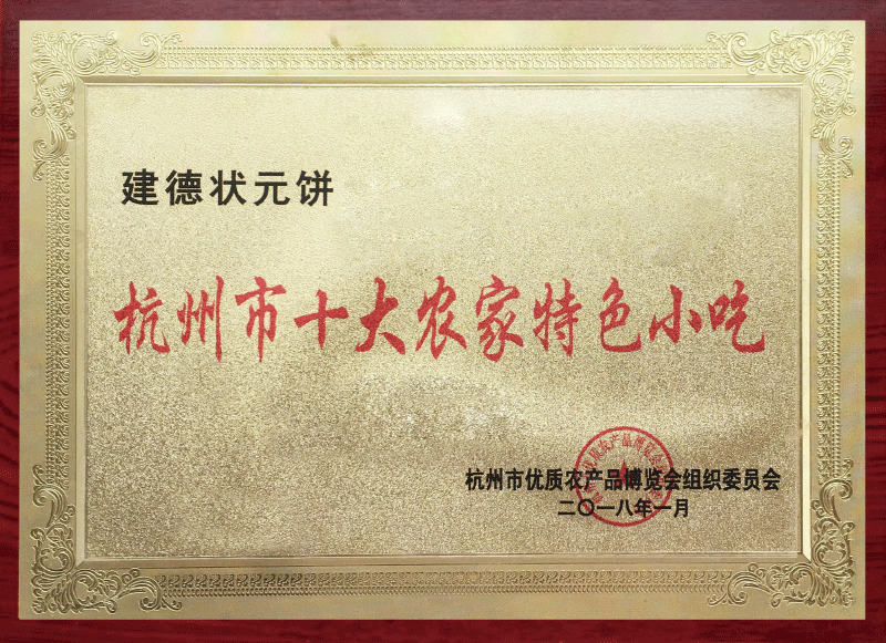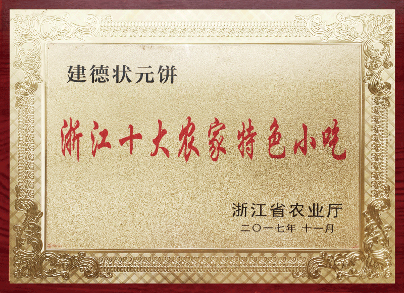 建德状元饼是江南农村流传的一种特色小吃。相传乾隆年间,建德严州梅城有个秀才赴京赶考,邻里乡亲争先恐后,送吃送衣。秀才怀揣着邻里乡亲们的期盼和他们亲手制作的饼点,历经千辛万苦,终于到达京城,并高中状元。皇上为其所感,故赐名为状元饼。